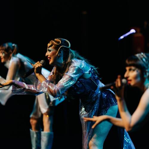 Afficher le planMédusa, créature mythique et cabarétique, enrage – serpents sifflants sur sa tête, morsures brillantes sur son corps, regard pétrifiant. Et si ses yeux n’étaient en réalité qu’un miroir, reflet d’une violence et d’une peur ; celles que certain.e.s taisent, celles que d’autres refusent d’admettre, d’entendre ? Cette histoire, c’est avant tout l’histoire d’un amour ; l’amour quon porte aux autres, à soi – ce nouvel amour à définir, à dessiner, à inventer. Du fond de sa grotte, elle démêle ses cheveux grouillants, délie les langues et demande Justice – Athéna, tu es là ? Quand les mots sont trop difficiles à articuler, elle chante avec ses sœurs-gorgones – chansons d’hier et d’aujourd’hui, chansons sorties tout droit de sa chambre d’adolescente ou de sa grotte reculée. Médusée mêle l’auto-fiction à la légende qui entoure la figure de la monstrueuse Méduse. Devant nous, Médusa et ses sœurs nomment tout – leurs rêves romantiques, leurs viols, leurs combats – elles déconstruisent leurs fantasmes et en inventent de nouveaux.