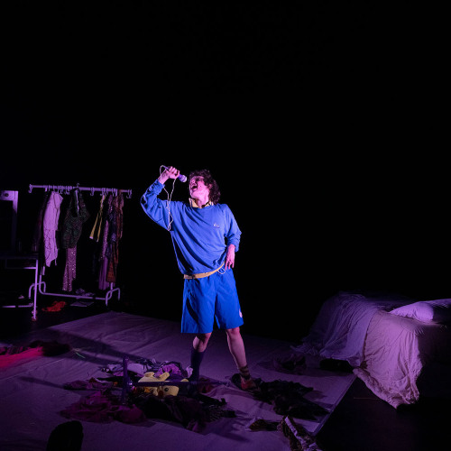 Conception Marcos Caramés-Blanco, Lucas Faulong Texte Marcos Caramés-Blanco Avec Lucas Faulong Collaboration artistique Maëlle Dequiedt Création sonore Thibaut Farineau Création lumière Enzo Cescatti Costumes Noé Quilichini
